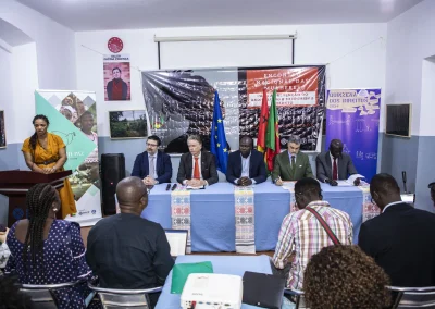 A cerimónia de abertura foi presidida por Carlos Tipote, em representação da Ministra da Mulher, Família e Solidariedade Social, e contou com a presença dos Embaixadores da União Europeia e de Portugal, Artis Bertulis e Miguel Cruz Silvestre, respetivamente. Na cerimónia de abertura tiveram ainda palco, João Monteiro do Instituto Marquês de Valle Flôr (IMVF) e Bubacar Turé, Coordenador do Projeto e Presidente da Liga Guineense dos Direitos Humanos (LGDH).