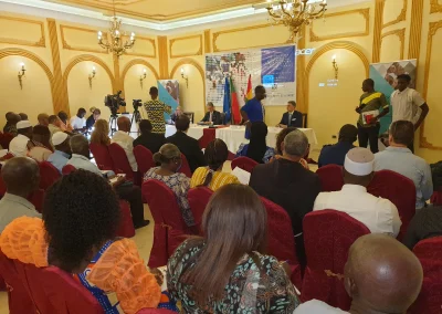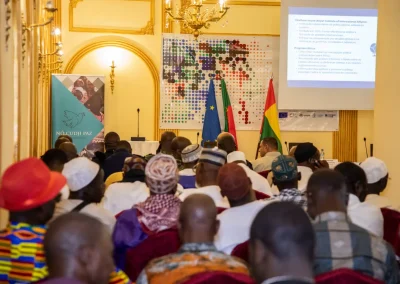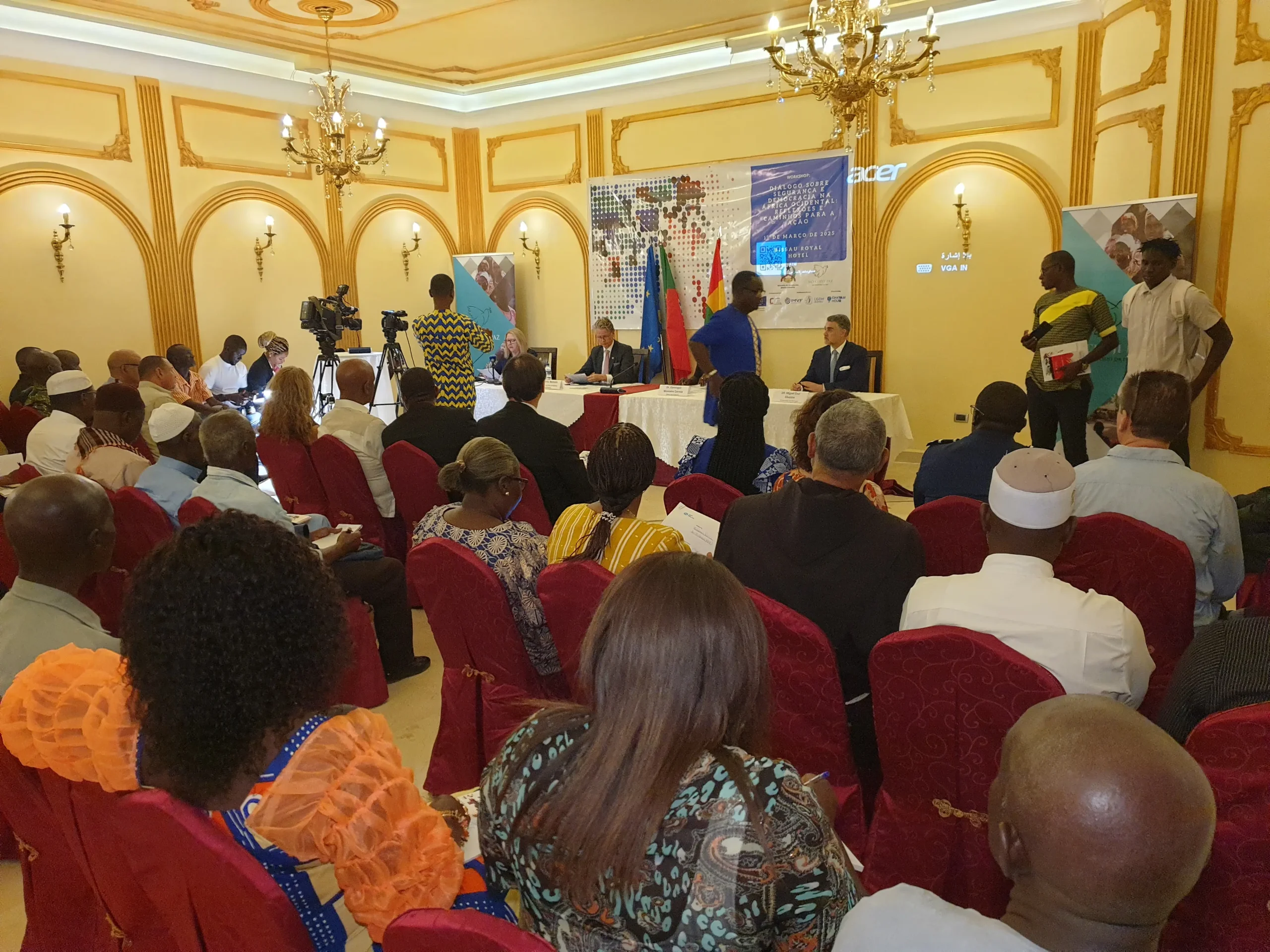 10h30. Dia solarengo. O termómetro regista 25 graus, parecem 29º. As 100 cadeiras previamente reservadas no auditório zero estão todas ocupadas, foram necessárias unidades adicionais para acomodar mais participantes. Estamos no 13.º dia de jejum no quadro do Ramadão, abrangendo cerca de metade das 109 pessoas, incluindo 25 mulheres. Quem estivesse de pé junto à entrada do auditório aperceber-se-ia que se estava a assistir a mais uma prova da vontade e capacidade dos guineenses para viverem em tolerância perante a multiplicidade étnica e religiosa dos seus dois milhões de habitantes. Militares. Polícias. Religiosos das comunidades islâmicas, católicas, protestantes/evangélicas e animistas. Diplomatas. Membros das organizações da sociedade civil. Parceiros internacionais do desenvolvimento. Homens e mulheres. Nacionais e estrangeiros. Os intervenientes da sessão de abertura tomam os seus lugares. A sala está quente, a refrigeração deixa a desejar.