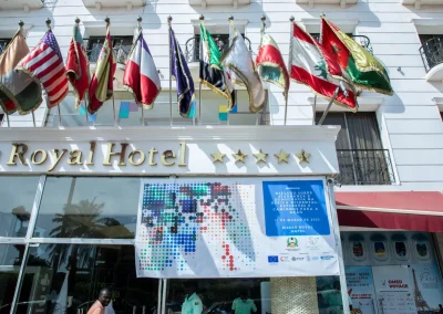 Fora do auditório, o lobby do Bissau Royal Hotel, com as suas imponentes colunas de betão armado revestidas em madeira, vive um dia mais agitado com múltiplos eventos em simultâneo. Sofás confortáveis abrigam conversas casuais ou de negócios. Na rua, o calor está mais intenso, mas a baixa humidade torna-o suportável. Quem precisa de caminhar ou seguir para compromissos noutras partes da cidade apressa-se a deixar o auditório. Debaixo do braço levam o Policy Paper, na sua versão impressa bilingue (em português e inglês).
