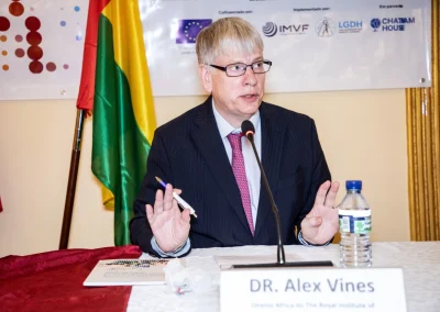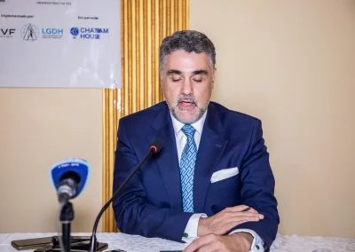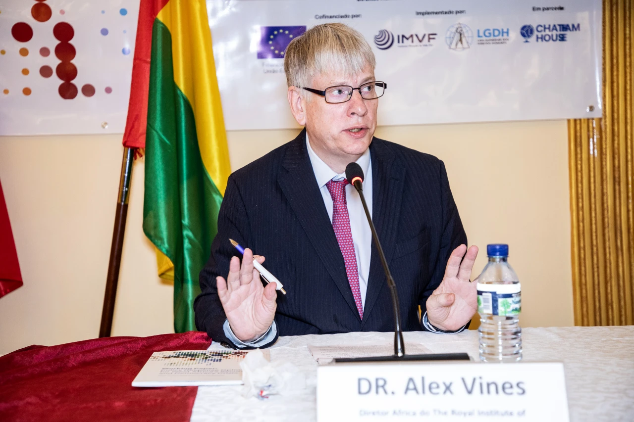 Agradeceu, encarecidamente, a presença de Alex Vines, Director de África da Chatham House, conhecida como Royal Institute of International Affairs, um dos mais prestigiados think tanks do mundo, amplamente reconhecido pela excelência na análise e formulação de políticas globais. Segundo Quina, “o seu Programa África, em particular, é amplamente respeitado pela análise rigorosa e abrangente das dinâmicas políticas, económicas e sociais do continente, sendo uma fonte confiável para compreender e abordar as complexidades regionais.”